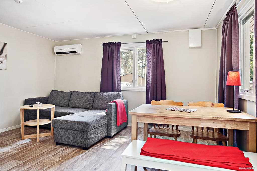 Ein gemütlicher Urlaub erwartet Sie in der charmanten Blå Jungfrustugan mit 30 qm, nur einen kurzen Spaziergang vom Meer entfernt. Die helle und geräumige Hütte bietet Platz für die etwas größere Familie. Die Hütte verfügt über eine möblierte, überdachte Terrasse, auf der Sie an warmen Sommermorgen ein schönes Frühstück genießen können. Im Inneren der Hütte finden Sie ein kombiniertes Wohn- und Esszimmer mit Esstisch, TV und ein Schlafsofa für zwei Personen. Die Küche ist mit Kühlschrank, Gefrierfach, Herd, Backofen und Mikrowelle ausgestattet. Das Schlafzimmer ist mit zwei Etagenbetten eingerichtet, und Decken sowie Kissen sind für alle Betten vorhanden. Im Badezimmer gibt es sowohl eine Dusche als auch eine Toilette.