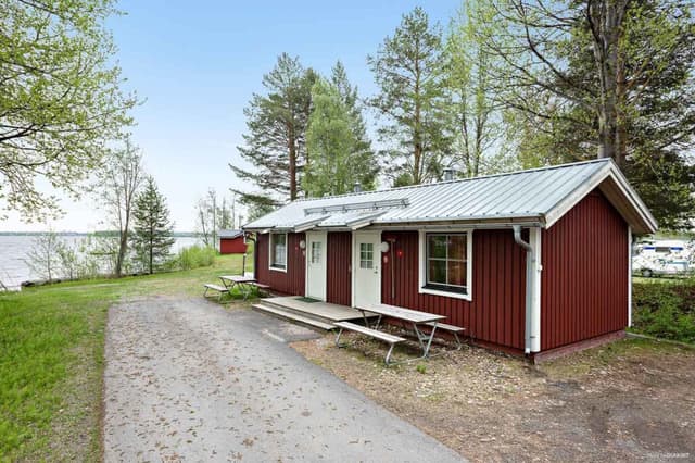 Dies sind die besten Hütten des Campingplatzes, kürzlich renoviert, mit sechs Betten auf 42 Quadratmetern und einer geräumigen Terrasse mit Blick auf den Luleälven.