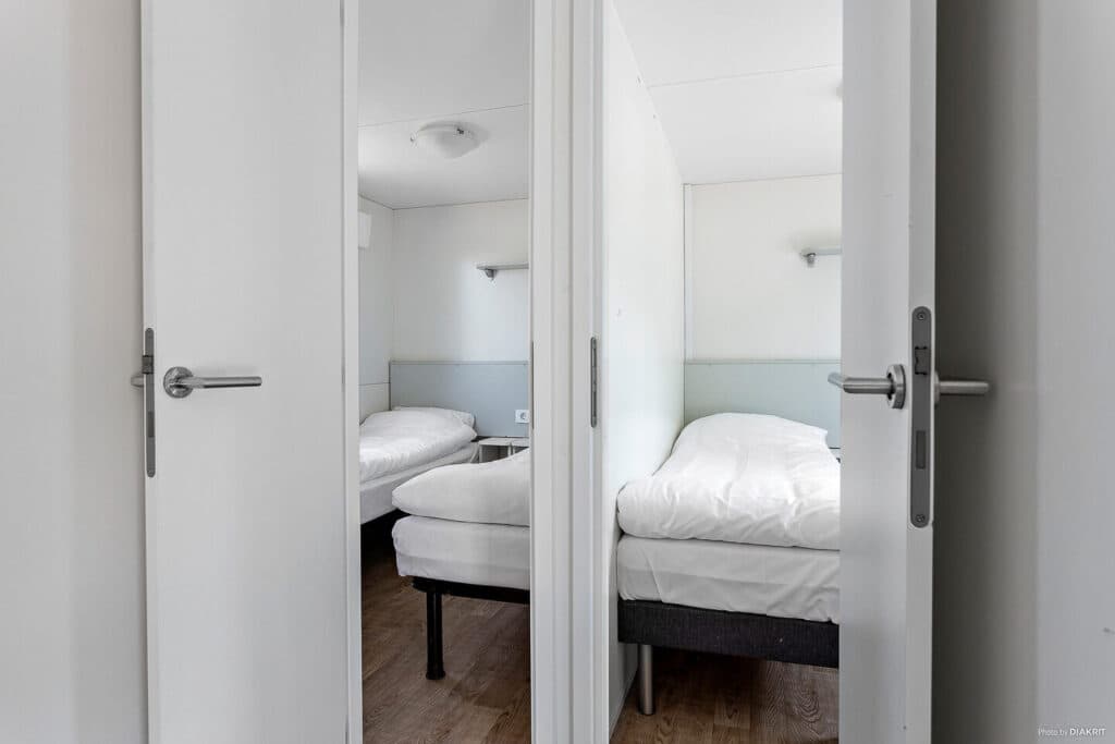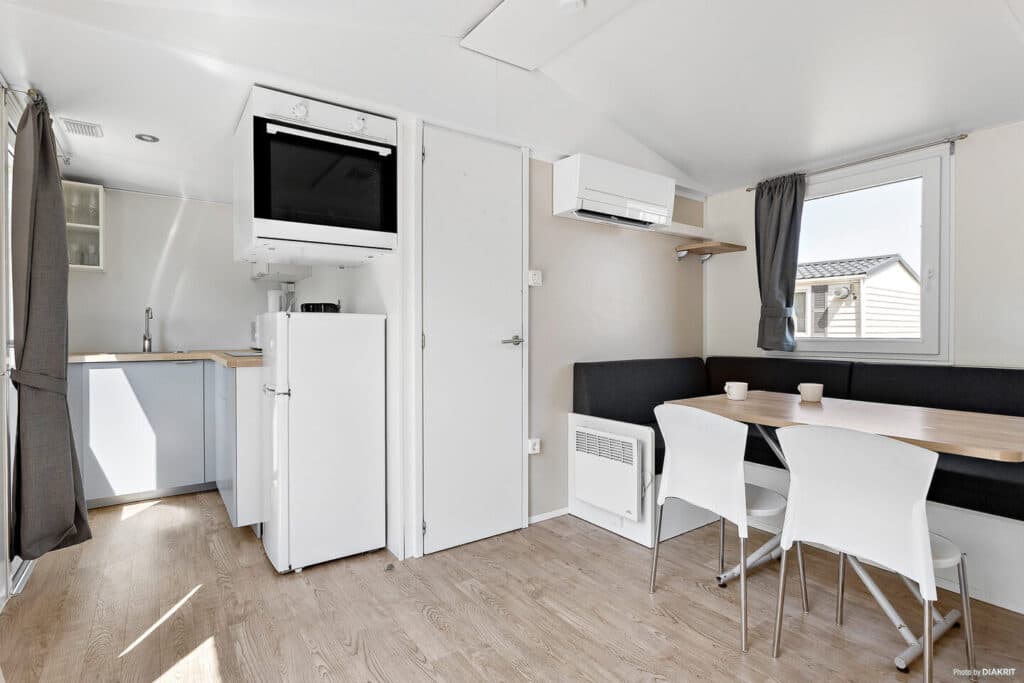 Das Mobilheim Ekerum Plus ist eine gute Alternative für alle, die während Ihres Urlaubs etwas mehr Wohnraum haben möchten. Hier gibt es Platz für bis zu sechs Betten, die auf drei Zimmer verteilt sind. Außerdem ist das Mobilheim mit einem Badezimmer mit Dusche und Toilette sowie einer weiteren separaten Toilette ausgestattet. Darüber hinaus gibt es eine komplette Küche mit allem, was man braucht, wie Backofen, Herd, Mikrowellenherd, Kühlschrank, Tiefkühler und Kaffeemaschine, sowie einen Esstisch, an dem Sie sitzen und leckere Mahlzeiten genießen können. Für zusätzliche Bequemlichkeit gibt es außerdem einen Fernseher und ein Sofa / eine Sitzgelegenheit, wo Sie sich am Abend entspannen und erholen können.