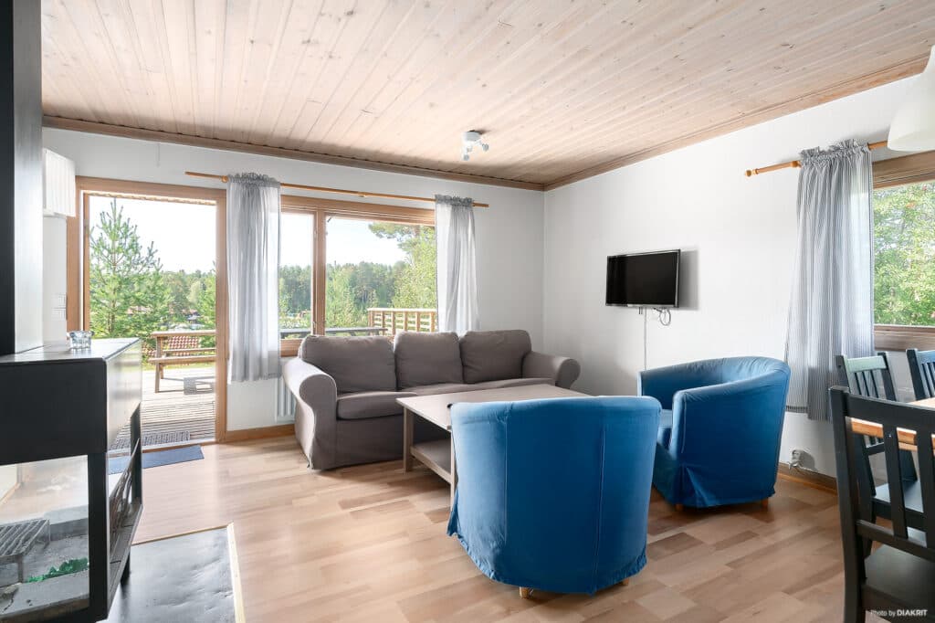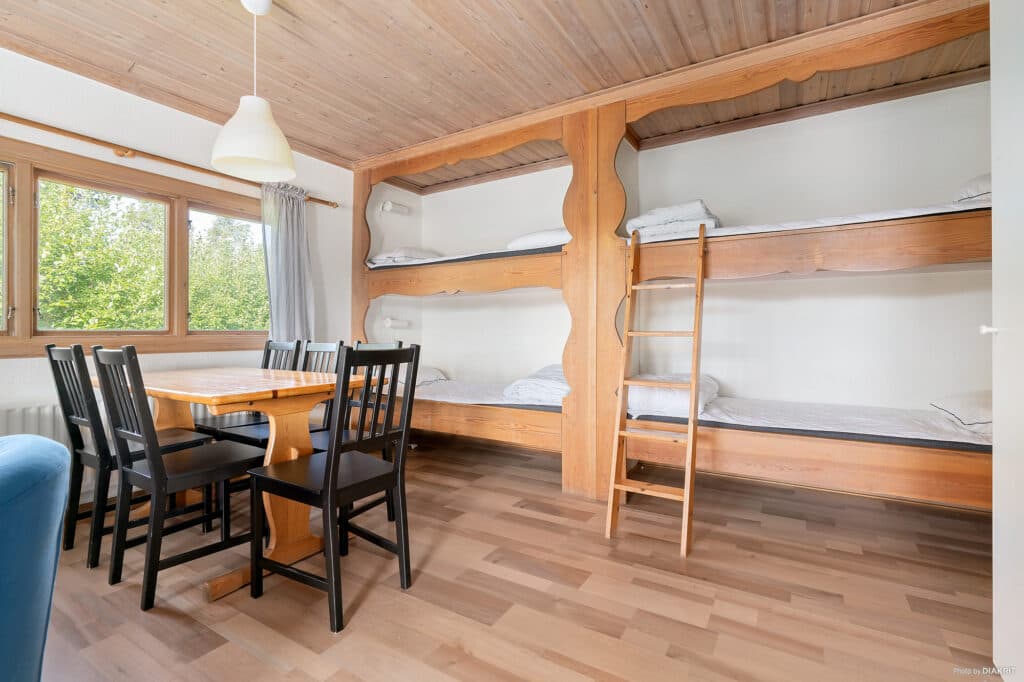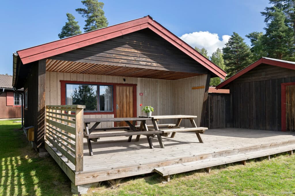 Die Dalstuga ist eine Hütte mit 35 m2 in der Hütte selbst sowie 8 m2 in einer separaten kleinen Hütte nebenan. In der Hütte finden sechs Personen Platz, in der Nebenhütte weitere zwei. In der Hütte gibt es ein Schlafzimmer sowie einen Wohnraum mit Küchenbereich, Essbereich, Kaminofen und Fernseher. Im Schlafzimmer befindet sich ein Stockbett, zwei weitere Stockbetten stehen im Wohnraum. Bettdecken und Kissen sind für alle Betten der Hütte vorhanden. Küchenbereich mit Herd, Backofen, Mikrowellenherd, Dunstabzug, Kühlschrank, Tiefkühler und Kaffeemaschine. Die Hütte verfügt über ein Badezimmer mit Toilette und Dusche. Die Nebenhütte ist 8 m2 groß und hat zwei Schlafplätze in einem Familienbett, Sitzgelegenheiten und einen Fernseher. Terrasse mit Ausblick über das Campinggelände. Die Hütte ist in der Nähe des Spielplatzes. Für die Hütte ist eine Motorheizungssteckdose vorhanden.