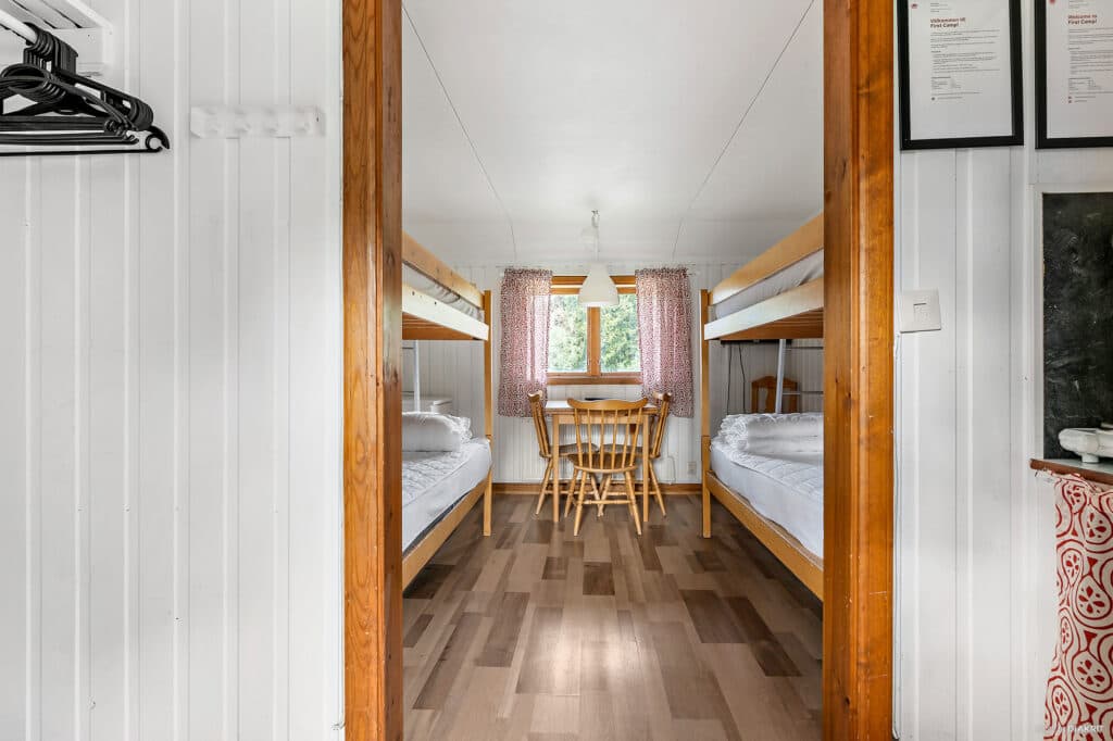 Das Zimmer für zwei Personen in der Jugendherberge Loftet ist 10 m2 groß. Nummer 35 A liegt im Erdgeschoss und Nummer 35 D im Obergeschoss. Das Zimmer ist ausgestattet mit zwei Stockbetten, einem Fernseher sowie einer Kochnische mit Kochplatte, Mikrowellenherd und Kaffeemaschine. Fließendes Wasser zum Abspülen, Toilette und Dusche befinden sich nicht im Zimmer, sondern im Gebäude, und werden mit anderen Gästen geteilt. Bringen Sie bitte eigene Putzmittel mit.