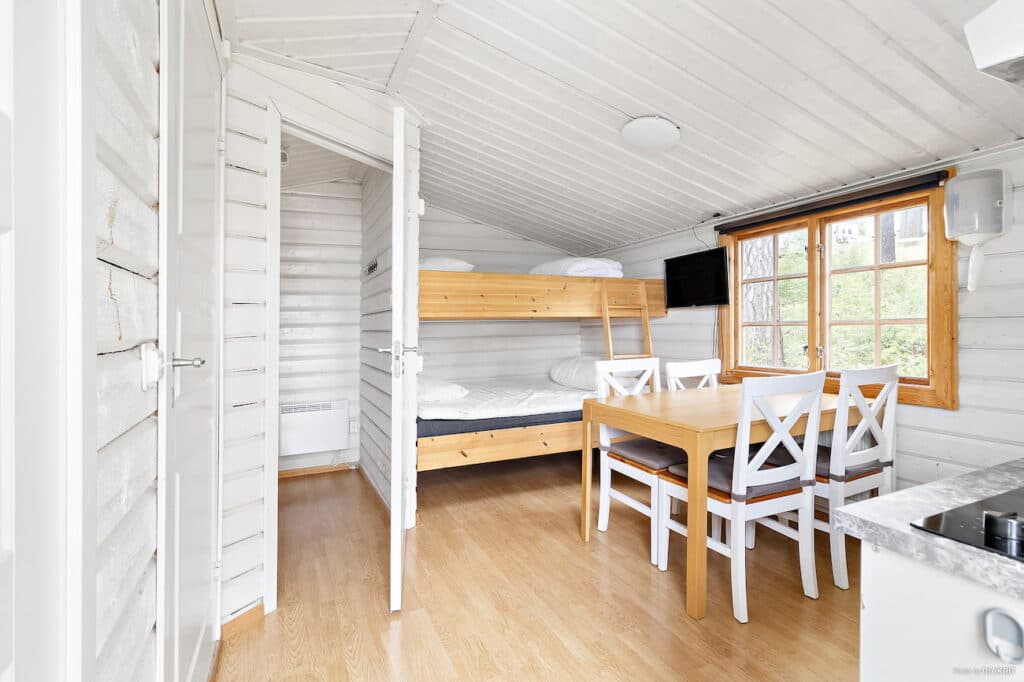 Suchen Sie nach einer Hütte mit bestmöglicher Strandlage? Dann ist dies die richtige Wahl für Sie! Die Timråstuga Plus liegt in unmittelbarer Nähe zum Strand und bietet einen magischen Blick auf das Meer an. Warum nicht den Ausblick auf der Veranda mit einem Morgenkaffee oder einem herrlichen Abendessen beim Sonnenuntergang genießen? In der Timråstuga Plus gibt es vier Betten, verteilt auf zwei Etagenbetten, wobei die unteren Betten 140 bzw. 120 cm breit sind. In der Hütte gibt es ein gefliestes Bad mit Fußbodenheizung, WC und Dusche, eine Küchenzeile, Herd, Ofen, Kühlschrank und Gefrierschrank, Kaffeemaschine, Wasserkocher und TV.