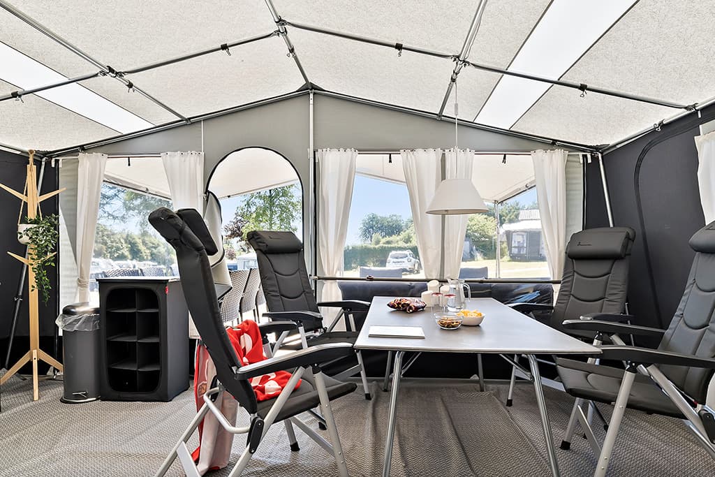 Wir haben ein ganz neues Glamping-Gebiet eingerichtet, in dem wir 4 große, luxuriöse Glamping-Zelte von höchster Qualität von Isabella aufgestellt haben. Wir haben sie auch mit Möbeln und Betten ausgestattet, sodass du vergisst, dass du in einem Zelt bist. Die Glamping-Zelte sind Luxus und Komfort der ersten Klasse. Du musst nicht einmal das Zelt aufbauen oder wieder abbauen. Kurz gesagt, es ist wie ein Hotel in der Natur.
