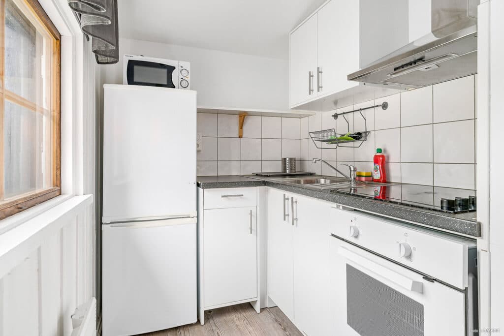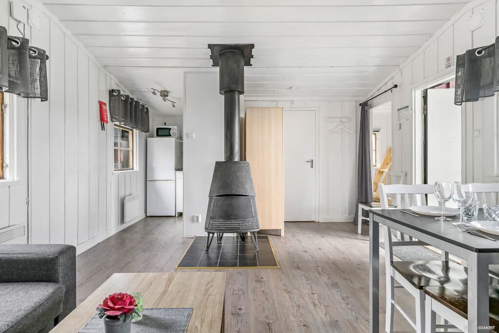 Hütte mit Deluxe Ausstattung für Selbstversorger, geeignet für 4 bis 5 Personen. Unsere beliebte Deluxe Hütte ist ganzjährig geöffnet und verfügt über einen atemberaubenden Blick von Östersund und dem Storsjön-See. Das separate Schlafzimmer mit Etagenbett bieten durch das breitere Unterbett bis zu 3 Personen Schlafmöglichkeiten. Im Wohnzimmer können auf dem kombinierten Eck-Schlafsofa 2 weitere Personen schlafen. Besonders gemütlich mit Holzofen und Fernseher. Voll ausgestattete Küche mit Herd, Kühlschrank, Mikrowelle, Kaffeemaschine, kein Backofen. Badezimmer mit Dusche und WC in der Kabine. Bettzeug vorhanden.