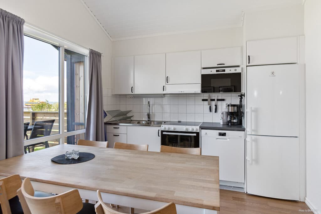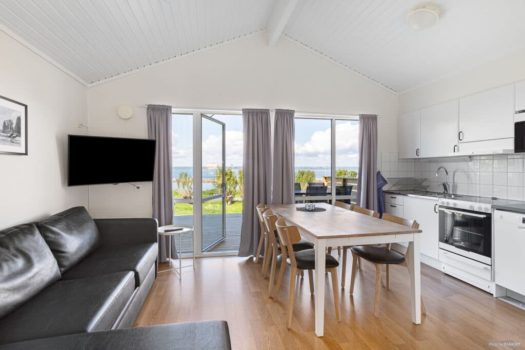 Vätternstuga – das sind unsere 34 m² großen 6-Bett-Ferienhäuser, die dem Wasser am nächsten liegen. Die Hütten verfügen über ein Badezimmer mit Dusche und WC. Jede Hütte verfügt über ein Wohnzimmer mit TV, eine möblierte Terrasse und eine Veranda mit Seeblick. Die Hütten verfügen über zwei Schlafzimmer, eines mit zwei Etagenbetten und das andere mit einem Doppelbett. Bettdecken und Kissen sind für alle Betten der Hütte vorhanden. Die Küche ist mit Geschirr und anderen Küchengeräten wie Spülmaschine, Mikrowelle, Kaffeemaschine, Kühlschrank und Gefrierschrank ausgestattet. Parkplätze stehen direkt am Ferienhaus zur Verfügung.
