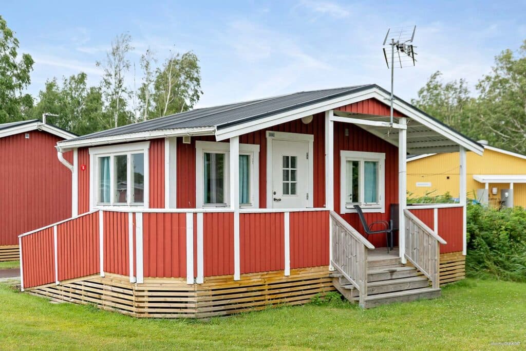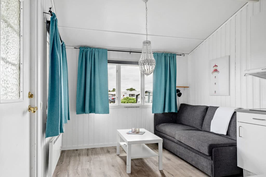 Gemütliche Selbstversorgerhütte für bis zu vier Personen. Die Ocean-Hütte ist mit einer Küchenzeile, 2 Kochplatten, einem Kühlschrank mit Gefrierfach, einer Kaffeemaschine sowie Küchenutensilien für vier Personen ausgestattet. Die Betten verteilen sich auf ein Schlafzimmer mit Etagenbett und zwei Schlafplätze auf dem Schlafsofa im Wohnraum. Außerdem gibt es ein Badezimmer mit Dusche und WC. Im Wohnbereich befindet sich ein Fernseher – perfekt für entspannte Abende oder verregnete Tage. Vor der Hütte gibt es außerdem eine möblierte Terrasse. Dort können Sie die herrliche Umgebung des Reiseziels genießen – oder warum nicht den Morgenkaffee draußen trinken? Das ist echter Urlaubsluxus!