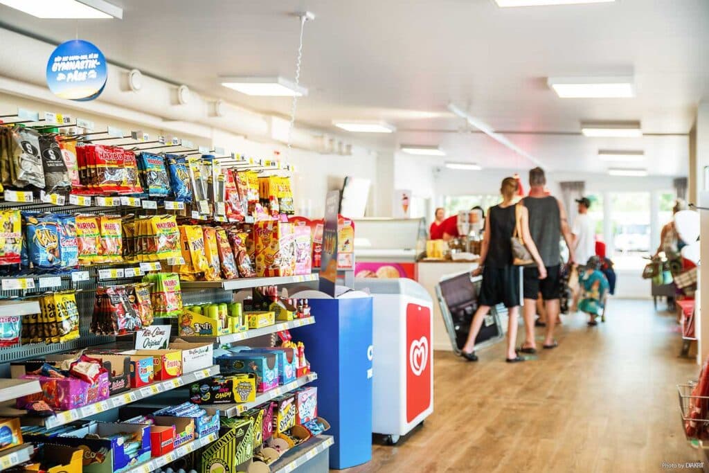 In unserem Camping-Shop finden Sie alles, was Sie für einen erholsamen Campingurlaub benötigen. Zum Duft von frisch gebackenem Brot finden Sie hier Spielsachen, Grillzubehör, Picknickutensilien, alle nötigen Grundnahrungsmittel und Gebrauchsartikel sowie Süßigkeiten und Snacks für einen perfekten Urlaubstag. Unser Angebot an Speiseeiswartet nur darauf, jeden Tag zu einem Sommertag zu machen, unabhängig vom Wetter. Und das Beste: Wenn man frei hat, ist jeder Tag eine riesige Kaffeepause mit frisch gebackenen Zimtschnecken.
