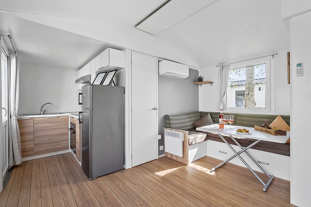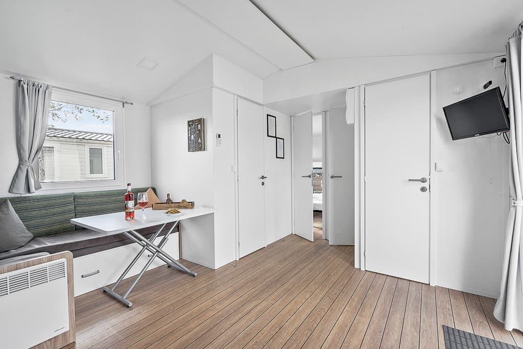 Willkommen in der Enebærodde-Hütte! Voller Komfort kombiniert mit dem echten Campinggefühl. Die Hütte ist ein Mobilheim und bietet viel Platz für bis zu 7 Personen. Es gibt Schlafplätze für 7 Personen, aufgeteilt wie folgt: ein Schlafzimmer mit einem 110 cm breiten Bett, ein Schlafzimmer mit zwei Einzelbetten und ein drittes Schlafzimmer mit zwei Einzelbetten und einem Etagenbett. Die Hütte verfügt außerdem über eine Küche, ein Wohnzimmer, ein Badezimmer, 2 Toiletten und eine große Terrasse.