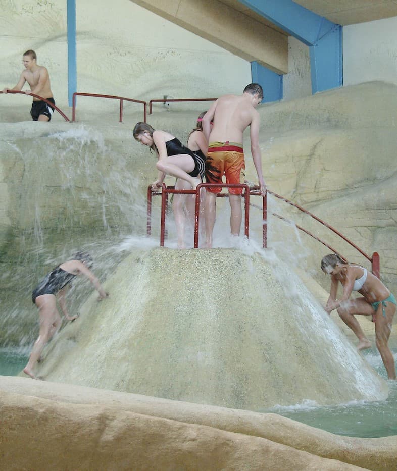 Der Wasserpark besteht aus drei Pools: dem Kinderbecken mit temperiertem Wasser, einem 20 Meter langen Schwimmbecken und nicht zuletzt dem Bulbjerg-Becken, inspiriert vom wunderschönen Bulbjerg. Dieses verfügt über eine Wasserrutsche und eine Kletterwand, auf der man sich durch das rauschende „Meer“ kämpfen muss, um bis ganz nach oben zu gelangen.