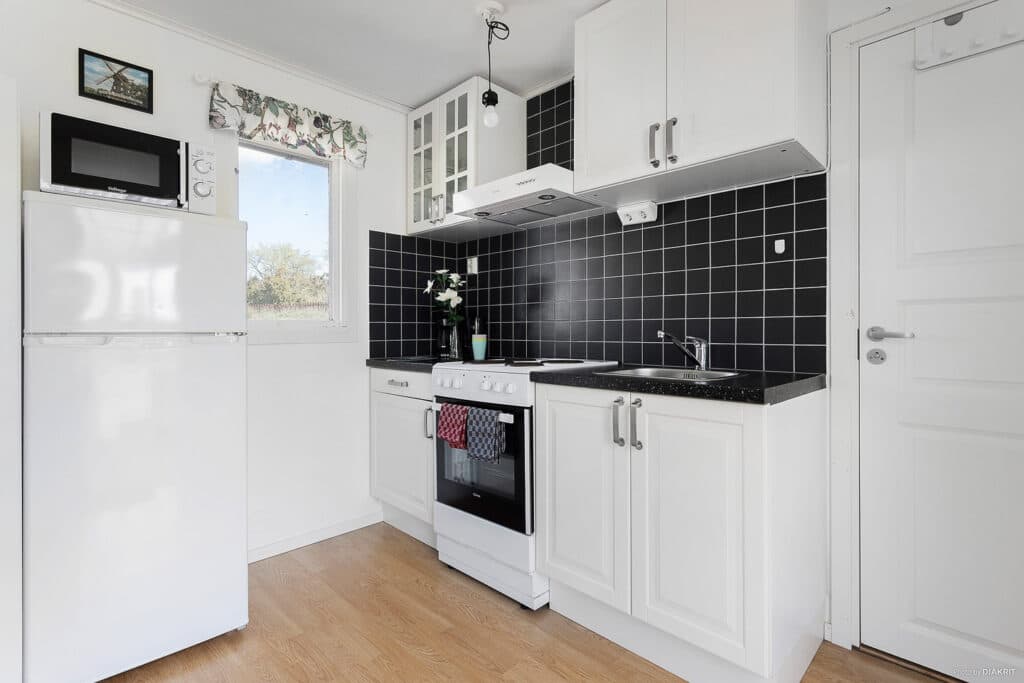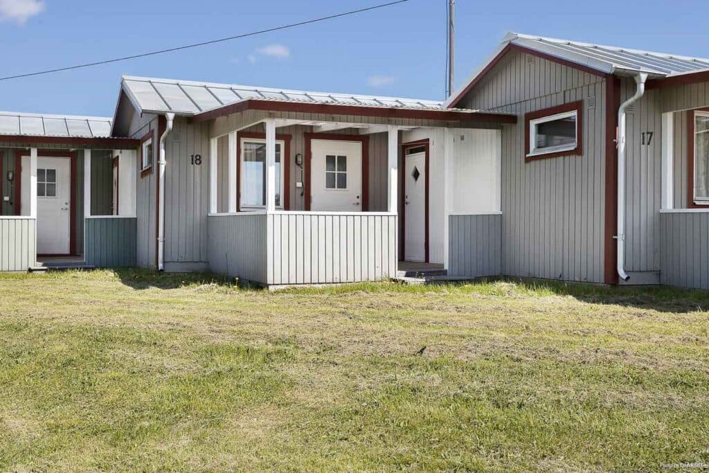 Kleine und gemütliche 4-Bett-Hütte mit allen wichtigen Annehmlichkeiten. Das Häuschen ist in zwei Ausführungen erhältlich. Die Cottages 3, 10, 13, 15, 21, 24, 25 und 26 sind mit einem Etagenbett und einem Schlafsofa ausgestattet. Die restlichen Cottages haben zwei Etagenbetten. Voll ausgestattete Küche mit Kühlschrank und Gefrierschrank, Mikrowelle, Herd mit Backofen und Kaffeemaschine. Badezimmer mit Dusche und Toilette. Überdachte Veranda mit einfachen Gartenmöbeln für angenehme Sommerabende.