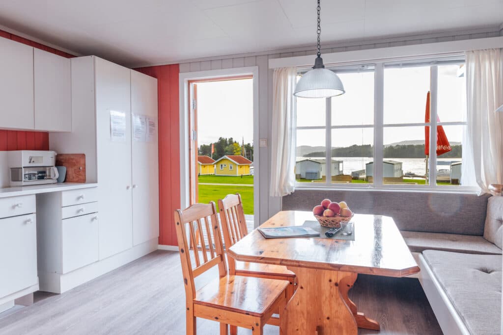 Willkommen in der Norsjø-Hütta, einer idealen Übernachtung für alle, die gemütlich und einfach wohnen möchten und es nicht weit bis zum Baden haben wollen. Hier wohnen Sie auf 22 m2, mit einem separaten Schlafzimmer und Gemeinschaftsraum mit Essplatz und Kochnische. In der Hütte gibt es ein Schlafzimmer mit zwei Etagenbetten (75 cm), mit Platz für vier Personen. Im Gemeinschaftsraum gibt es ein Schlafsofa mit Platz für zwei Personen. Die Kochnische ist mit Kochplatten, Kühl- und Gefrierschrank, Spülmaschine und Kaffeemaschine ausgestattet. Hier haben Sie zudem ein eigenes Badezimmer mit Dusche und WC. Auf der Veranda bei der Hütte gibt es Gartenmöbel für alle, die ein leckeres Abendessen mit Blick über die wundervolle Umgebung auf dem Gelände genießen möchten.