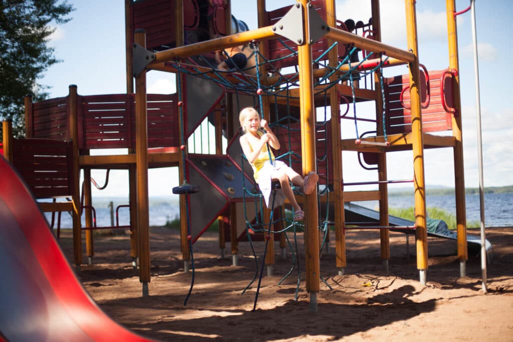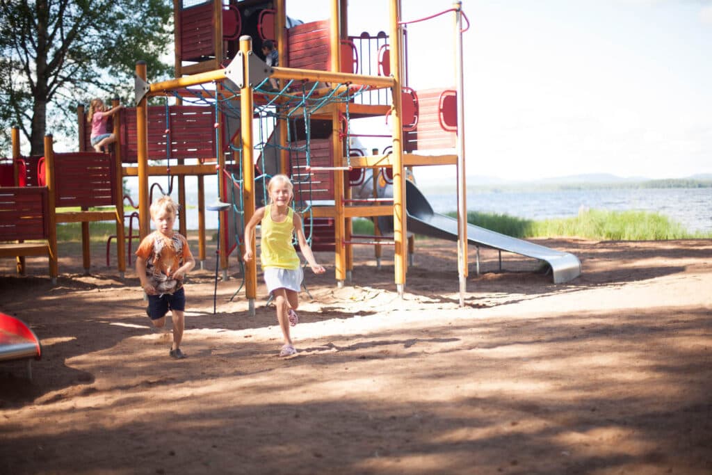Probieren Sie unsere Hüpfkissen aus, die sehr beliebt sind! Auf dem Campinggelände haben wir zwei Hüpfkissen, ein etwas kleineres beim Spielplatz am Aktivitätenzentrum Kajutan und ein größeres in schöner Lage am Strand des Orsasees. Lassen Sie die Kinder hüpfen und Spaß haben, während Sie den schönen Blick auf den See und die wärmenden Sonnenstrahlen genießen.