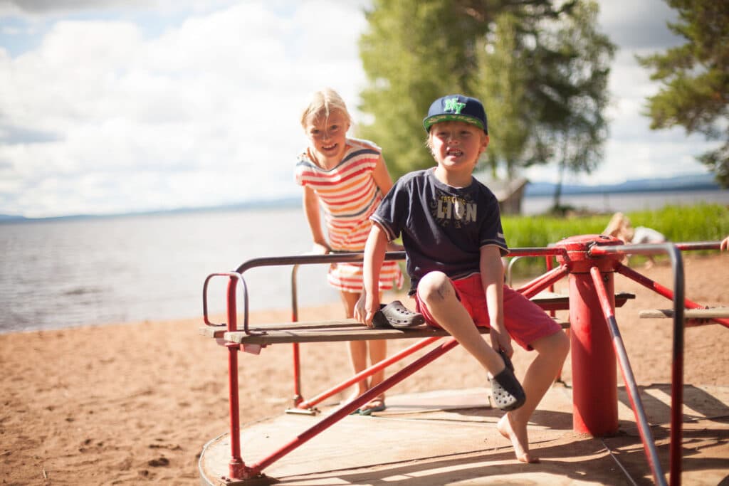 Der Strand, der sich am gesamten Campinggelände entlang erstreckt, wird oft als die Riviera von Dalarna bezeichnet, was keine Überraschung ist, da er kilometerlang, flach und dadurch sehr kinderfreundlich ist.