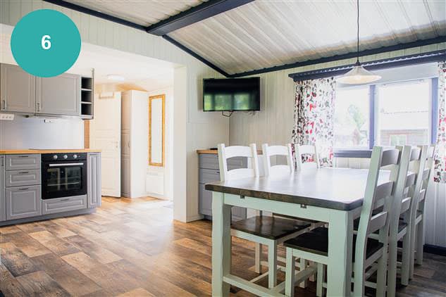 Die Küche ist mit einfacheren Küchenutensilien, Kühlschrank, Gefrierschrank oder Gefrierfach, Herd, Backofen, Perkolator und Mikrowelle ausgestattet. Bitte beachten Sie, dass Hütte 41 keinen Geschirrspüler hat. Das Badezimmer verfügt über Dusche und Toilette. Vor der Hütte befindet sich eine Motorheizungssteckdose.