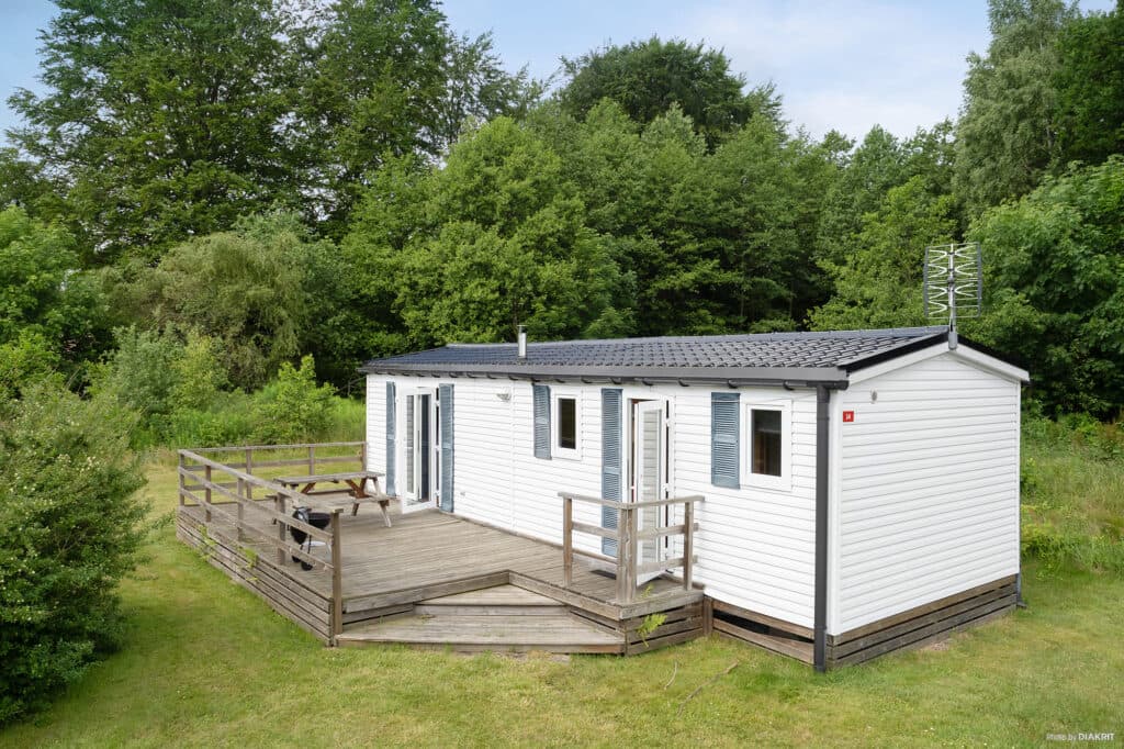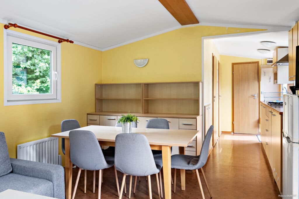 40 m² mit 2 Schlafzimmern, 1 großem Wohnzimmer mit Bettsofa, WC/Dusche. Große Terrasse mit Blick auf unseren Teich. Insgesamt 6 Betten. Zu vermieten April-Oktober.