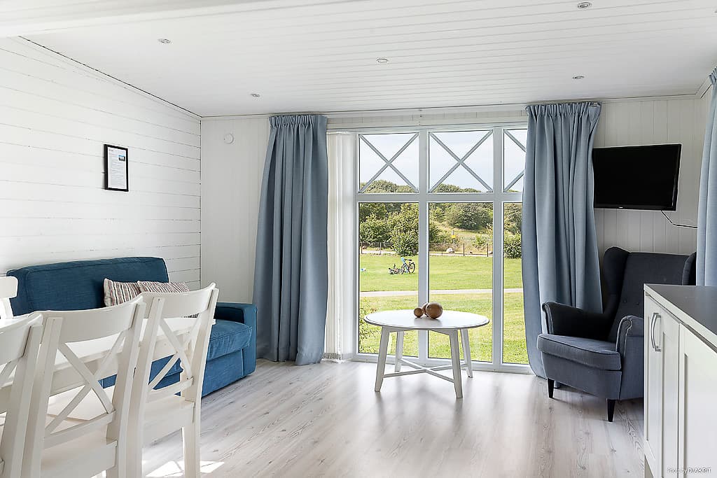 Die Kopenhagener Hütte ist eine idyllisch gelegene Hütte mit dem Meer und der Öresundbrücke als Nachbarn. Die Hütte, die die größte Unterkunft auf dem Campingplatz ist, hat eine Fläche von 40 Quadratmetern und ist gemütlich eingerichtet. Hier ist Platz für insgesamt sechs Personen. In der Hütte gibt es ein großes Wohnzimmer mit Küche und Essbereich. Die Küche ist komplett ausgestattet mit Kühlschrank, Gefrierschrank, Herd, Backofen, Mikrowelle und Geschirrspüler – einfach alle Annehmlichkeiten für einen erholsamen Urlaub. Im Wohnzimmer gibt es auch eine gemütliche Sitzecke mit Schlafsofa und Fernseher. Es gibt zwei Schlafzimmer, eines mit Doppelbett und im anderen befinden sich zwei 80 cm breite Betten. Bettdecken und Kissen sind für alle Betten in der Hütte vorhanden. Das Badezimmer ist hell gefliest und verfügt über eine Dusche sowie eine Toilette. Vor der Tür finden Sie eine schöne möblierte Terrasse mit dem besten Blick auf den Campingplatz.