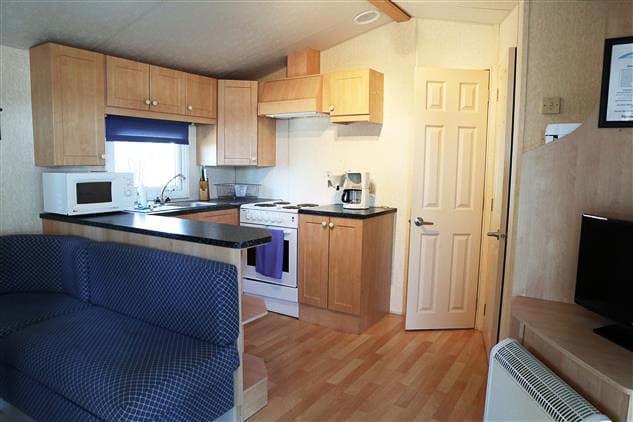 Die mobilen Häuser Vikarby bieten Platz für sechs Personen und sind 32 m2 groß. Drei Schlafzimmer, eines mit Doppelbett, eines mit zwei Einzelbetten und ein Zimmer mit einem Etagenbett. Bettdecken und Kissen sind für alle Betten der Häuser vorhanden. Das Bad verfügt über Dusche und Toilette. Die Küche ist mit einem Kühlschrank, einem Gefrierschrank, einem Herd mit Backofen, einer Mikrowelle, einer Kaffeemaschine und Küchenutensilien ausgestattet. Ein Fernseher ist im Haus vorhanden. Veranda mit Stühlen und Tisch.