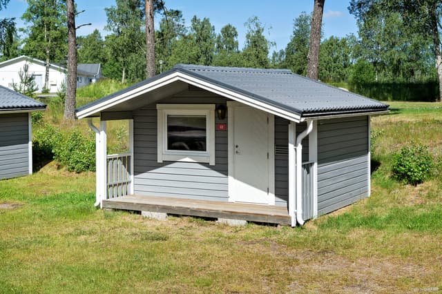 Lundbytorp liegt in einem ruhigeren Bereich des Campingplatzes, etwas weiter entfernt von der Rezeption und dem Eingang. Es handelt sich um eine kleinere Hütte mit 12 qm und vier Schlafplätzen.