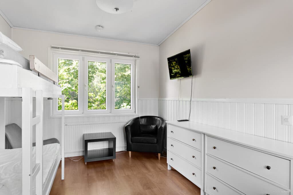 Ein modernes Apartment mit 22 m² und sechs Schlafplätzen – zwei Etagenbetten und ein Doppelbett. Zu jedem Bett gehören eine Matratze, eine Decke und ein Kissen. Das Apartment ist mit einem Esstisch und Stühlen für die ganze Gruppe ausgestattet. Im Wohnzimmer gibt es zwei Sessel, einen Couchtisch und eine Kommode. Die Küche verfügt über zwei Kochplatten, einen Kühlschrank, eine Mikrowelle und zwei Kochtöpfe sowie das wichtigste Küchenzubehör und Geschirr für sechs Personen. Im Apartment gibt es fließendes Wasser und eine Spüle. Toiletten und Duschen befinden sich in einem Gemeinschaftsbereich direkt außerhalb des Apartments und werden mit den anderen Bewohnern geteilt.