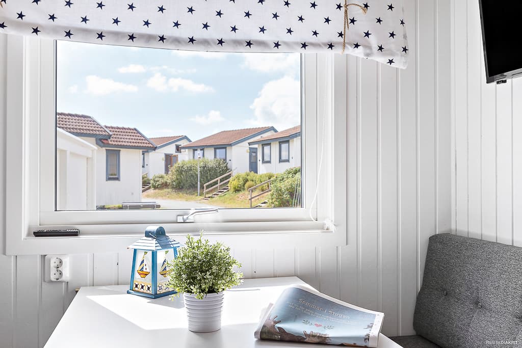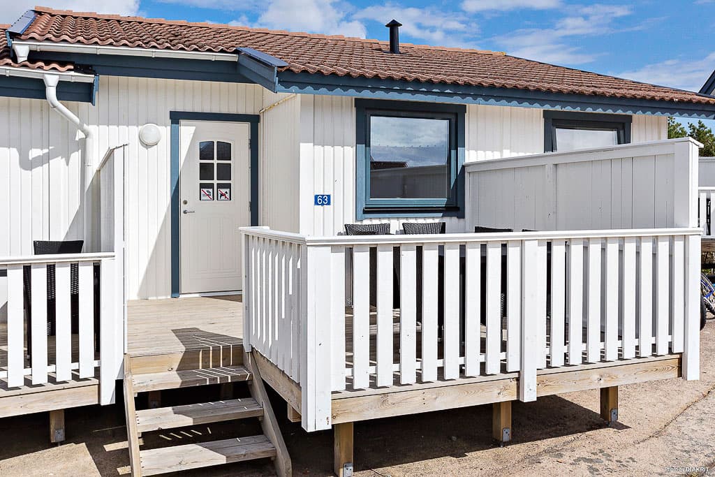 Hübsche Doppelhäuser bieten ein geschmackvolles, komfortables Ambiente. Auf 33 qm Wohnfläche können es sich sechs Personen bequem machen. Nach einem erlebnisreichen Tag am Meer lässt sich auf der möblierten Terrasse entspannt die Abendstimmung genießen. Im Inneren erwarten Sie zwei Zimmer und ein Loft mit zwei Schlafgelegenheiten, außerdem ein Schlafsofa für zwei Personen am Essplatz. Das Schlafzimmer ist mit einem Doppelbett, zwei Sesseln sowie einem modernen wandmontierten Fernseher eingerichtet. Für alle Betten liegen Decken und Kissen bereit. In der komplett ausgestatteten Küche findet sich neben Kühl- und Gefrierschrank, Backofen und Herd auch eine Spülmaschine. Das Badezimmer hat Dusche und Toilette.