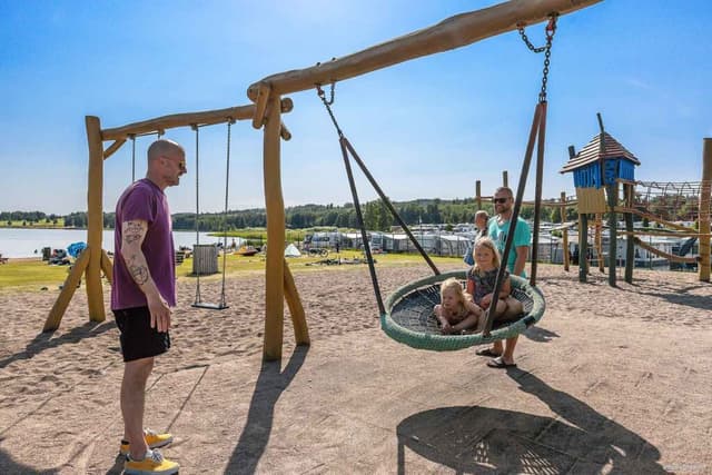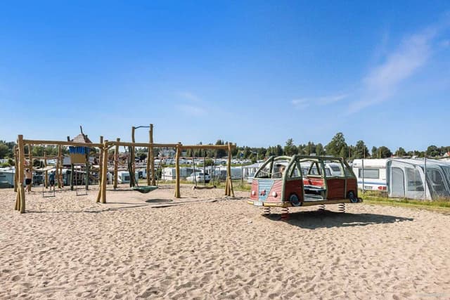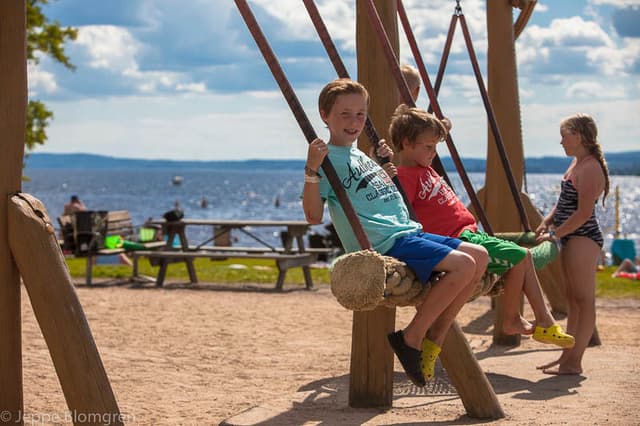 Inside the camping area there is child-friendly and shallow lovely sandy beach at lake Fryken. There is also a large playground and beach volleyball. For the four-legged guests there is a special bathing area on the east side of Kolsnäsudden.