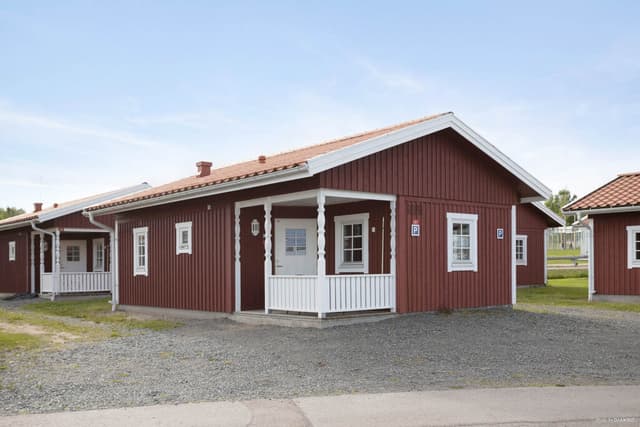 Die Sunnestuga Plus ist 50 m2 groß und hat zwei Schlafzimmer sowie einen Wohnraum mit Küche.