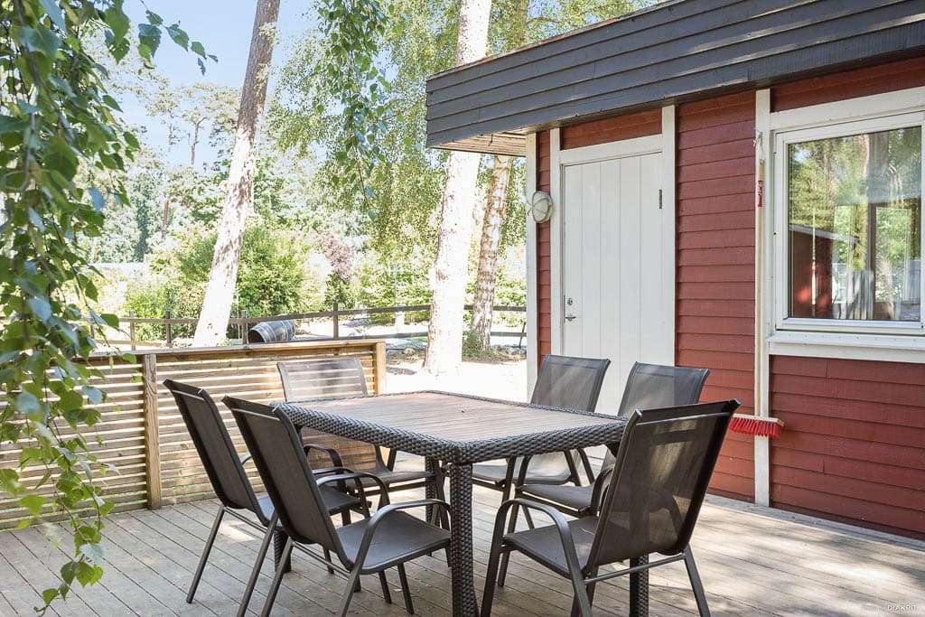 Die Ängalagslängan ist die geräumigste Hütte des Campingplatzes mit ganzen 65 qm und bietet Platz für bis zu 6 Personen. Die Hütte verfügt über ein Schlafzimmer mit zwei Einzelbetten (die leicht zu einem Doppelbett zusammengeschoben werden können), ein Schlafzimmer mit einem Etagenbett sowie ein Schlafsofa im Wohnzimmer. Decken und Kissen sind für alle Betten in der Hütte vorhanden. Die Küche ist komplett ausgestattet mit Herd, Backofen, Kühlschrank, Gefrierfach, Mikrowelle und Geschirrspüler für höchsten Komfort. Die Hütte hat ein großes und modernes Badezimmer mit Dusche, Toilette und Waschmaschine. Im Wohnzimmer gibt es eine gemütliche Sofaecke mit Fernseher und Zugang zu einer großen, schönen möblierten Terrasse.
