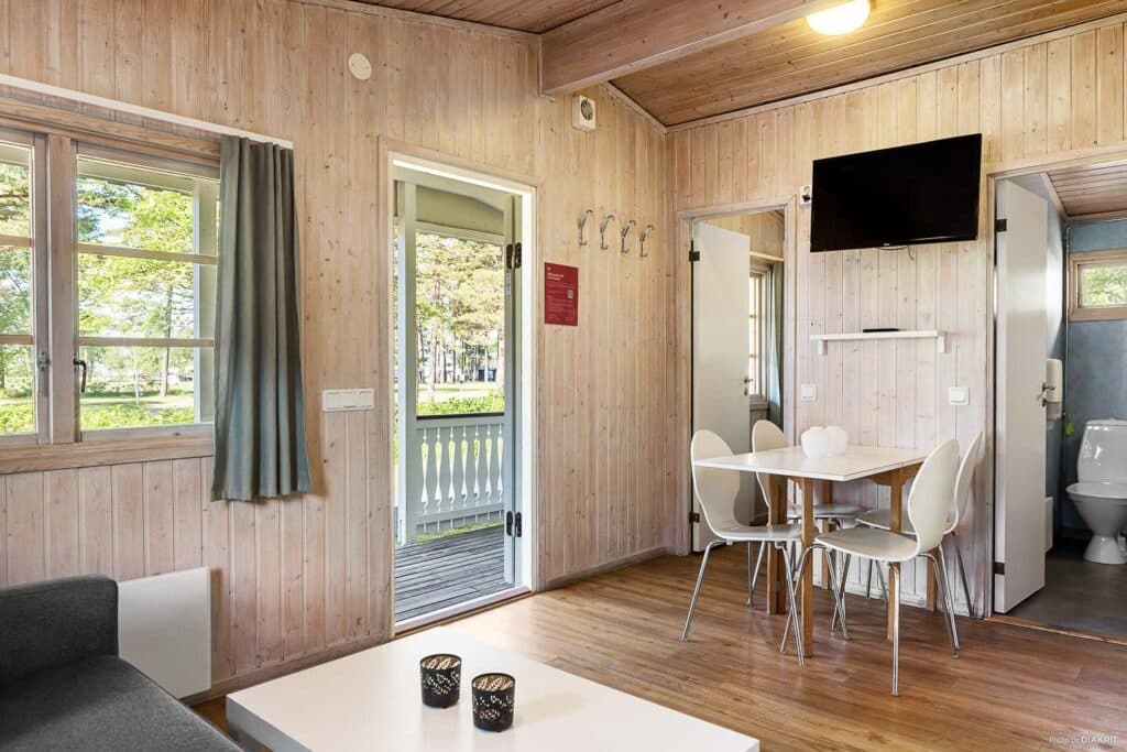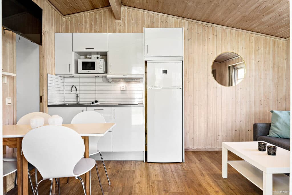 Die Westküstenhütten liegen wunderschön in ruhiger Umgebung, in der Nähe von Rezeption, Geschäft und Bistro. Mit nur einer Minute bis zum Spielplatz sind sie die perfekte Wahl für Familien mit Kindern. Diese 4-Bett-Hütten sind 18 m² groß, aufgeteilt in zwei Räume, und verfügen über eine große, möblierte Terrasse mit Überdachung. Es gibt ein Schlafzimmer mit einem Etagenbett, und im kombinierten Küchen-/Wohnbereich befindet sich ein Schlafsofa. Die Hütten Nr. 486 und 487 haben ein Doppelbett (140 cm) im Schlafzimmer. Decken und Kissen sind für alle Betten in der Hütte vorhanden. Mahlzeiten können in der Pantryküche zubereitet werden, die mit Herd, Kühlschrank und Mikrowelle ausgestattet ist. Im Badezimmer gibt es eine Dusche und ein WC. Parkplätze befinden sich direkt an der Hütte.