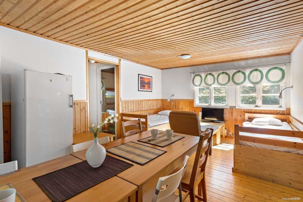 Sehr einfache Hütte mit 7 Betten (80cm). Die Hütte liegt leicht abgeschieden im Wald. Zugang zu den Duschen und Toiletten befindet sich im Servicehaus des Campingplatzes, doch beachten Sie bitte das die Hütte weiter entfernt liegt. Parkplatz an der Hütte. Nichtraucherzimmer. Haustiere erlaubt. Kein fließendes Wasser.